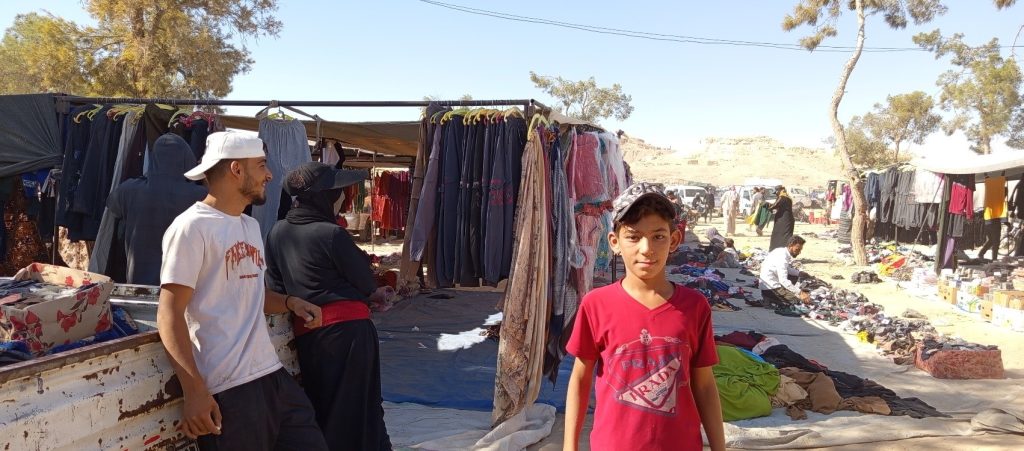 في ساحةٍ ترابية مفتوحة، يبيع الناس ما لديهم ويشترون ما يحتاجون، بينما يبتسم أحمد الصغير وهو يساعد والده في بيع الألبسة الشعبية. هناك، بين التعب والأمل، تولد حكايات الناس من تراب الأرض وصبرهم الجميل.